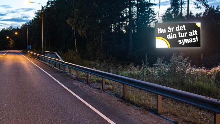 Bra synlighet – Vältrafikerad väg med ca 12.000 bilar /dygn. Din reklam syns minst 10 % av tiden dvs. 1.200 bilar /dygn kan se din annons + alla vid lättrafikleden.